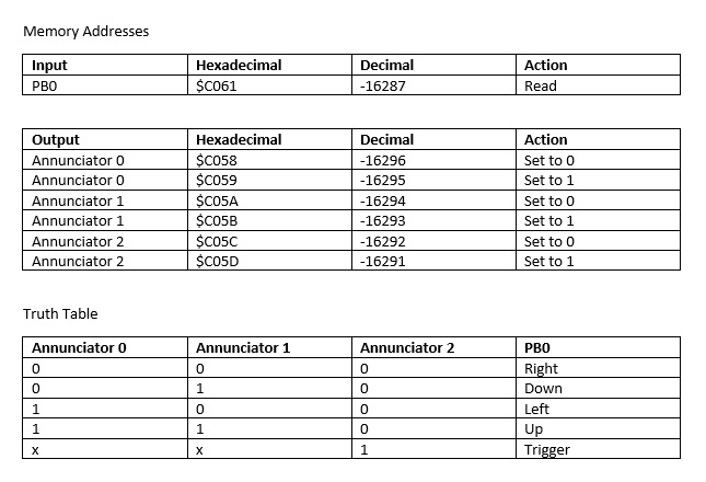 The PETSCII Robots game conversion overlapped the development of the SNES MAX. It's unfortunate that the SNES MAX was not able to be completed in time for the game release (you need to run PETSCII Robots V1.1 or above for the card to work). While putting the first batch of production cards together I also converted a two player game, Mario Bros, to test and make use of SNES MAX's dual controller ability, These are the only software titles currently providing support for the card but we hope other developers come on board and help add more titles. There are a few games I have on my radar which I hope to convert some day. Other great candidates include the recent work to convert the "Game Boy" Tetris to Apple II conversion. By using an SNES controller you can closely resemble the "Game Boy" controls and capture more closely that specific controller feeling. Another great game, Roborton 2084, could use a controller upgrade. Its Apple II version resulted in a gameplay downgrade. The arcade version uses two joysticks, one for movement and one for the shooting direction. Much like the PETSCII Robots game, it could really benefit from having these independent actions. There are many other keyboard based Apple II games where the joystick control was not implemented or was cumbersome to use.
