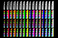 From Issue 89 of the Compute magazine, October 1987, I was able to get an article about Chrome which is "Double Hi-Res Graphics Commands For Applesoft" and subsequently the disk image from ASIMOV which relates to this article. This allowed me to generate a few test patterns in AppleWin. The test pattern for two consecutive blocks is inadequate in explaining the colour relationship but the test pattern for three consecutive blocks is spot on. Bingo. Every block of four pixels can be determined by looking at the previous block and looking at the next block. I was able to extract this information and place it into an array of 4096 elements. This is our lookup table. In the application I have optimised this lookup table for storage but I expand it to 4096 elements during the initialization routine. This allows simple and fast processing.