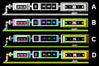 The above pictures show my first attempts at colour and the AppleWin version to aim for. Actually when using the IIc with a colour adapter and watching it on my 14inch Sony monitor I get a picture that is somewhere in between screen shots C and D. However for an LCD solution the AppleWin version should be adequate for now. The video signal clock is approximately 14MHz. It's different for PAL than for NTSC but the important thing is that the colour reference is always a quarter of the video signal clock. This gives us four pixels per colour (0000 for Black, 0001 for Red, 0010 for Brown etc.) which equates to 16 colours. Now if we cut up the monochrome picture, screen shot A, into four pixels per block and apply the colours to each block we end up with screen shot B. If we do the same except displaying the colour only where the signal is white we end up with screen shot C. The double high resolution of 560x192 in monochrome mode is reduced to 140x192 when colour is introduced. The Apple IIc and IIe reference manuals call this the effective resolution but they just leave it at that. However when you look at screen shot B you can see that it's very blocky and comparing that to the actual display, screen shot D, you see that there is more to it.